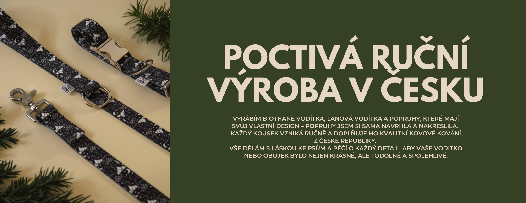 Používám BioThane, kvalitní nylonová lana a pevné kování z Česka.
